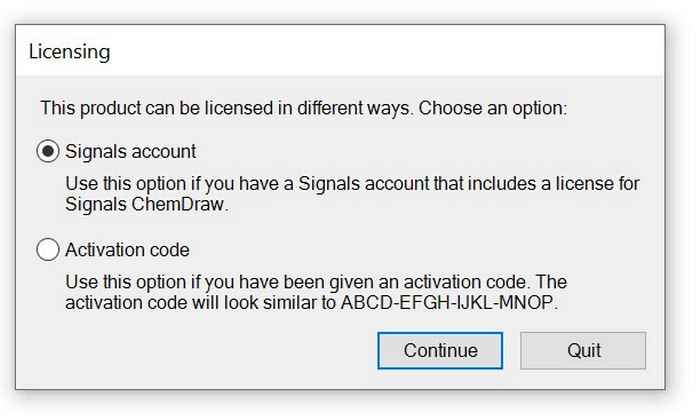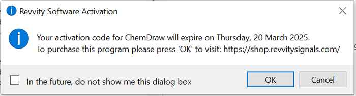 Click on 'OK' and click on 'Cancel' (do not click on 'Activate'!). Restart ChemDraw. Then you will see this: