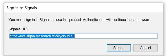 Fill in this URL: https://uva.signalsresearch.revvitycloud.eu and hit 'Sign in'. A new browser will open with these questions: