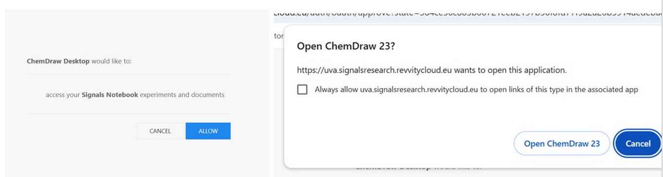 Hit 'Allow' and 'Open ChemDraw 23'. Then you will see this notification in ChemDraw: