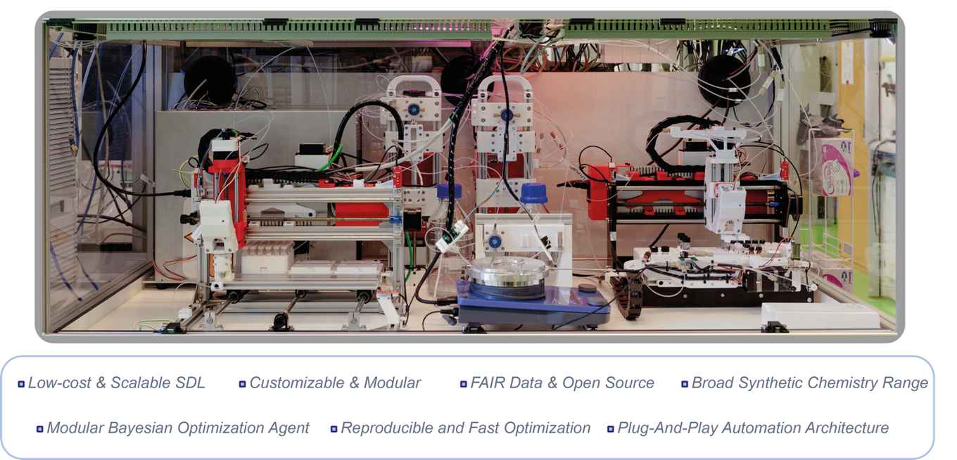 Simone Pilon, Elia Savino, Oliver M. Bayley, Michael Vanzella, Miguel Claros, Petros Siasiaridis, Junsong Liu, Florian Lukas, Matteo Damian, Vasilis Tseliou, Niccolò Intini, Aidan Slattery, Jesus SanJosé-Orduna, Tim den Hartog, Ron A. H. Peters, Andrea F. G. Gargano, Francesco G. Mutti & Timothy Noël: A flexible and affordable self-driving laboratory for automated reaction optimization. Nature Synthesis (2026). DOI: 10.1038/s44160-026-01053-0