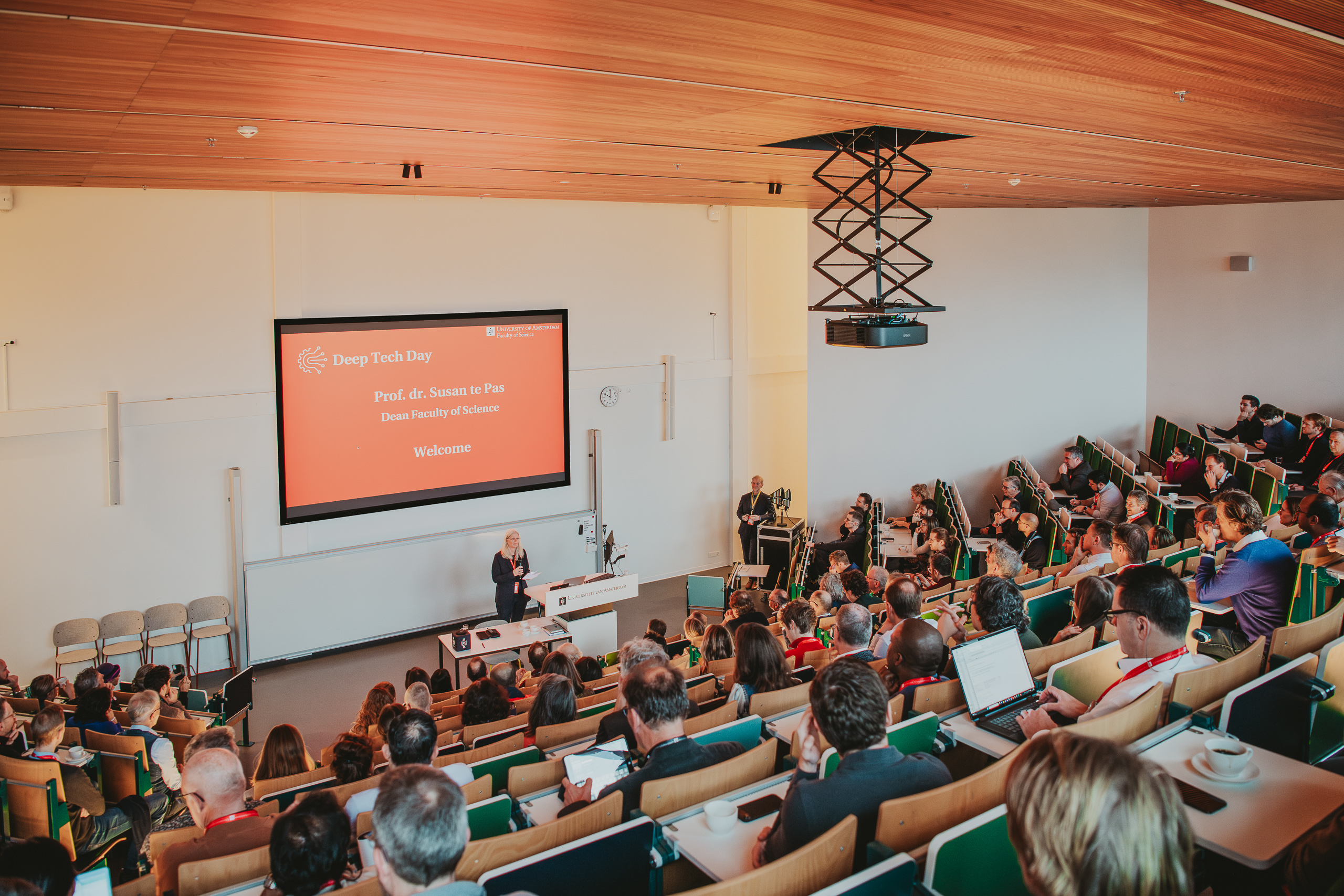 After an opening address by Susan te Pas, Dean of the UvA Faculty of Science, the plenary continued with a keynote by Tjerk Opmeer (director Innovation Policy, Ministry of Economic Affairs). He discussed the broader context of deep-tech research in the Netherlands and highlighted the National Technology Strategy (NTS).